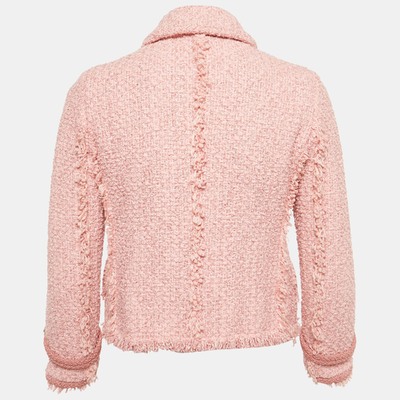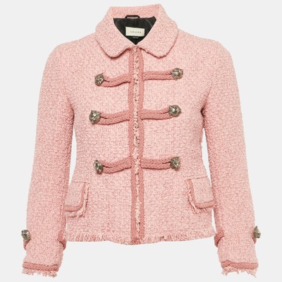 Gucci revisits the heritage jacket in pink tweed with a button front closure that channels retro chic. Textural fabric and signature details give a nod to the house’s maximalist streak while staying refined. Wear it with tailored pants for the office or over a slip dress for an eclectic high low mix.