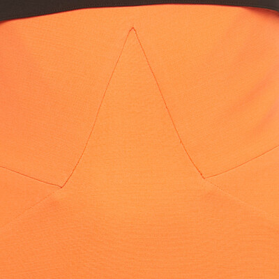 This orange sheath dress combines stretch crepe with contrast paneling for visual interest. Victoria Beckham’s signature attention to fit ensures the dress sits smoothly while accentuating movement.