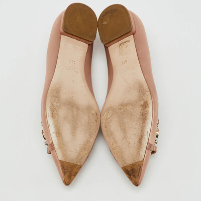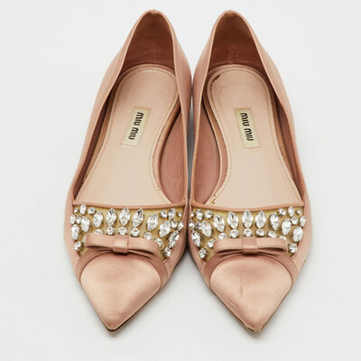 Miu Miu Beige Satin Bow Crystal Embellished Pointed Toe Ballet Flats Size 38.5 1222169 (бежевый, lpn31004603)