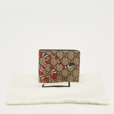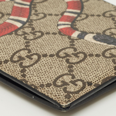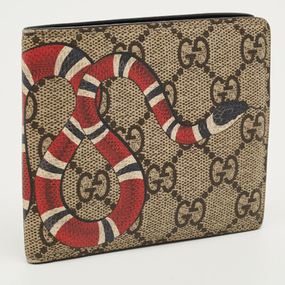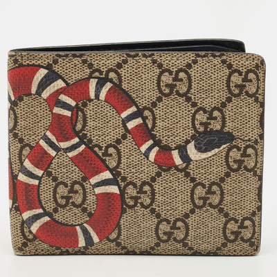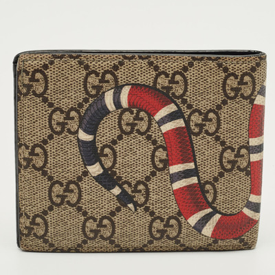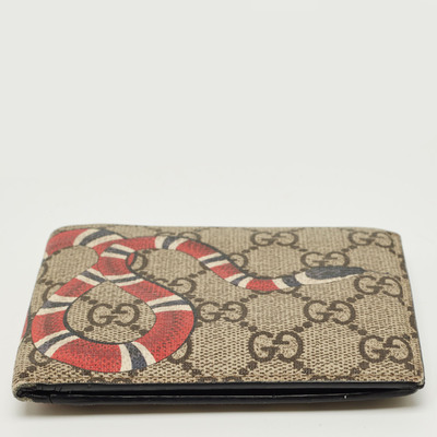 You pick up the Gucci Kingsnake wallet, feeling the soft beige GG Supreme canvas beneath your fingers. Inside, cards and notes settle neatly into their compartments, while the slim silhouette tucks easily into a pocket or bag.