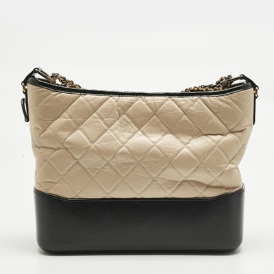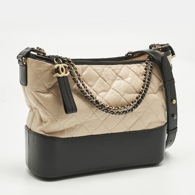 Chanel Beige/Black Quilted Aged Leather Medium Gabrielle Hobo 1221799 - 1