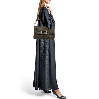 Tobacco Zucca canvas forms the body of Fendi’s Mia Flap Shoulder Bag, where the inverted “FF” logo rests as the highlight. The adjustable strap lets it rest naturally on the shoulder, while the interior holds what the day calls for, turning a familiar icon into a companion for life in motion.