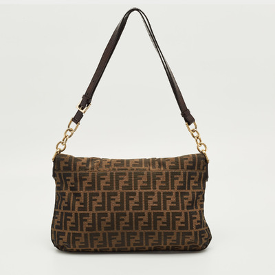 Fendi Tobacco Zucca Canvas and Patent Leather Mia Flap Shoulder Bag 1221752 - 1