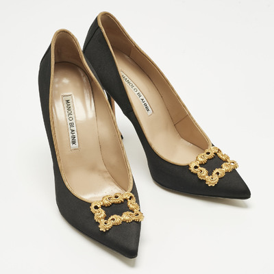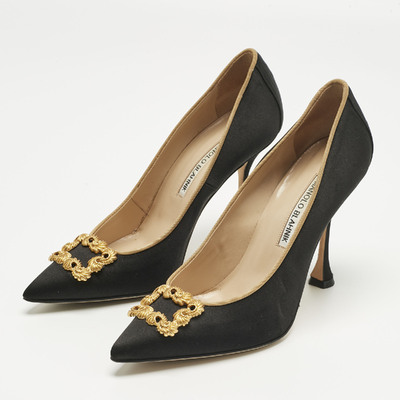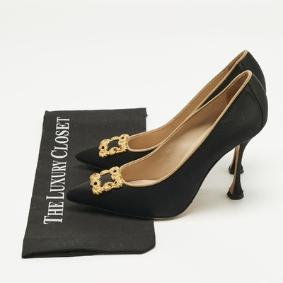 Manolo Blahnik Black Satin Hangisi Crystal Embellished Pumps Size 38 1221626 (чёрный, lpn31004757)