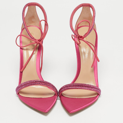 Delicate straps studded with crystals are laid over the toes and at the ankles to form this stunning Montecarlo design by Gianvito Rossi. Dreamy in pink, the beauties are complemented with pointed toe beds and 11 cm high heels.