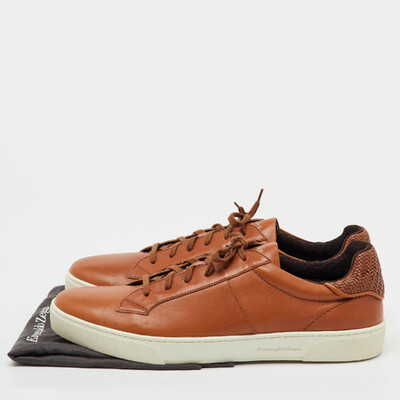 Ermenegildo Zegna Tan Leather Low Top Sneakers Size 45 1221024 (lpn31004940)