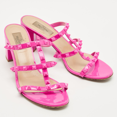 Valentino Pink Patent Leather Rockstud Slide Sandals Size 40 1220982 - 1