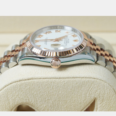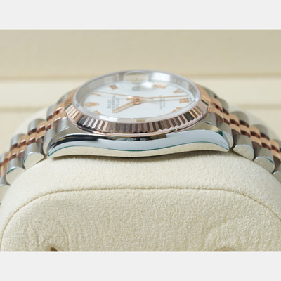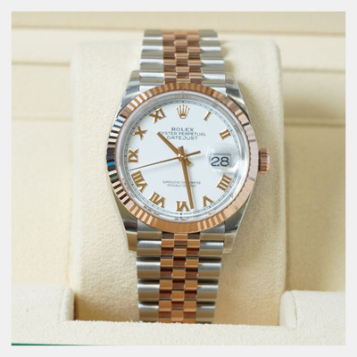 Timeless and serene, this Datejust pairs the crisp clarity of a white dial with the refined warmth of rose gold. The result is an effortlessly graceful timepiece — pure in its design, and enduring in its sophistication. A classic for those who move with quiet confidence.