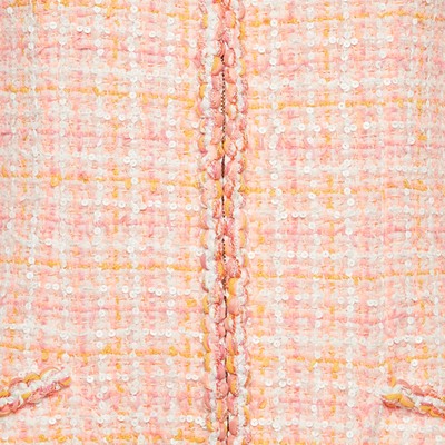 Chanel’s pink tweed fantasy jacket embodies the maison’s iconic textile reinterpreted with a playful hue. Structured seams and signature trim nod to the house’s couture heritage. Throw it over denim for modern contrast or wear with a matching skirt for full Parisian polish.