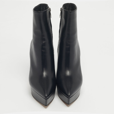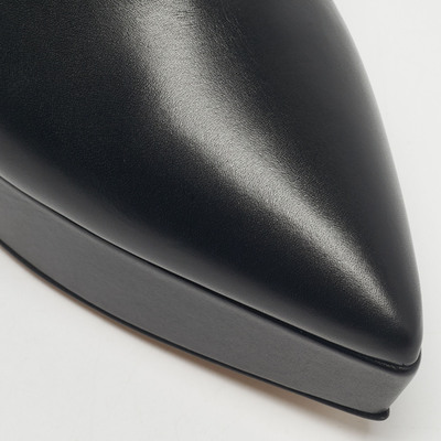 The Dasha boots from Gianvito Rossi are crafted in black leather with a streamlined ankle length cut. Clean stitching and a sleek silhouette highlight the brand’s refined approach to everyday footwear. The understated profile makes them a versatile option for grounding both casual and tailored looks.