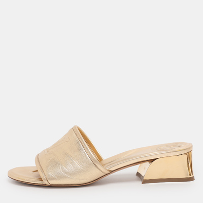 Louis Vuitton Gold Leather Magnetic Mules Size 40 1221838 (lpn31005074)