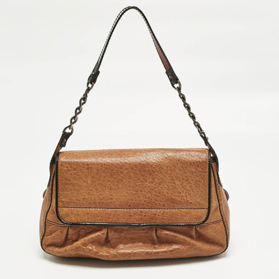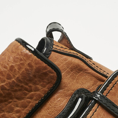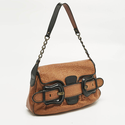 A statement of contrast and texture, the Fendi B Bis shoulder bag pairs brown leather with patent trims in black. Two distinctive buckles anchor the look, marking it unmistakably Fendi. The result is striking.