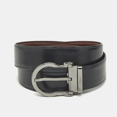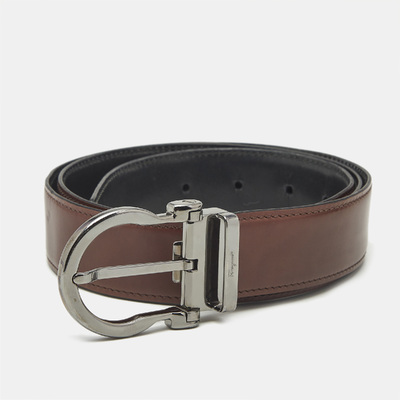 Salvatore Ferragamo Grey/Brown Leather Gancini Buckle Reversible Belt 110 CM 1221598 (lpn31005135)