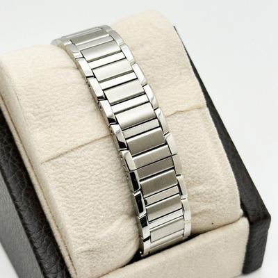 The Cartier Tank WSTA0065 is the epitome of refined elegance. Its 26 mm silver stainless steel case houses a precise quartz movement, combining clean lines with timeless sophistication. A true representation of Cartier’s iconic design language, it is a versatile and enduring piece for everyday luxury.