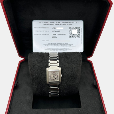 Cartier Tank WSTA0065 Quartz Silver Stainless Steel Women Wristwatch 26 mm 1221330 (lpn31005186)