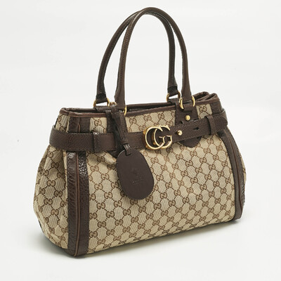 Gucci Ebony/Beige GG Canvas and Leather Medium Running Tote 1221214 (коричневый, lpn31005263)