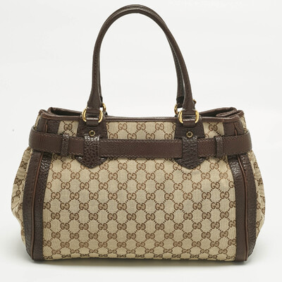 Gucci Ebony/Beige GG Canvas and Leather Medium Running Tote 1221214 - 1