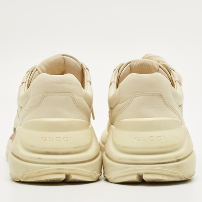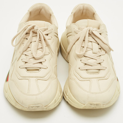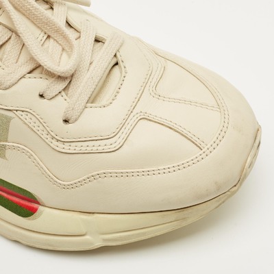 Chunky yet refined, these Gucci Rhyton sneakers are crafted in supple cream leather and flaunts ;ace up closure. With their sculptural sole and retro inspired silhouette, they offer both statement appeal and all day comfort.