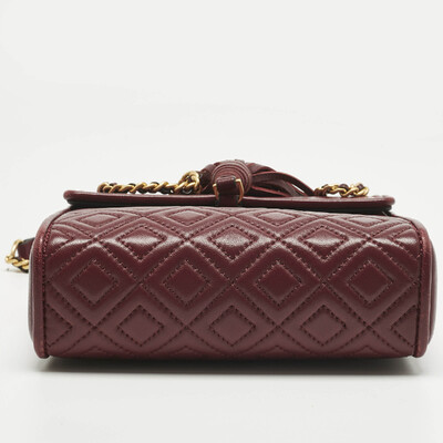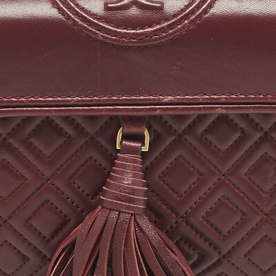 Tory Burch Burgundy Quilted Leather Fleming Tassel Crossbody Bag 1220743 (lpn31005286)
