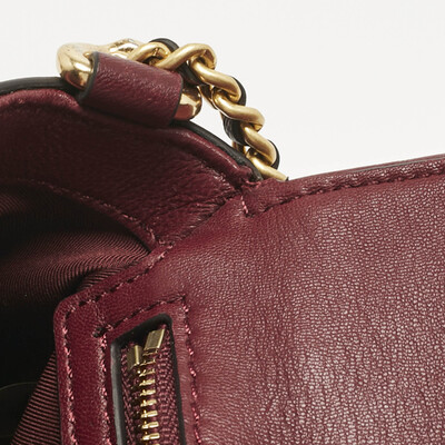 Deep burgundy leather with signature quilting, anchored by a sleek chain strap and a front tassel. Compact yet accommodating, it carries essentials with ease, moving seamlessly from daytime errands to evening plans.