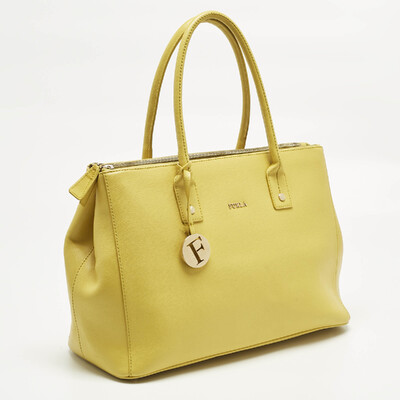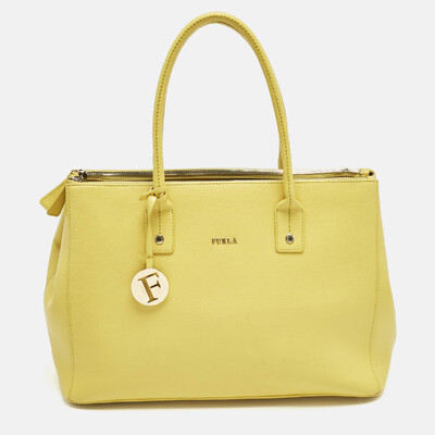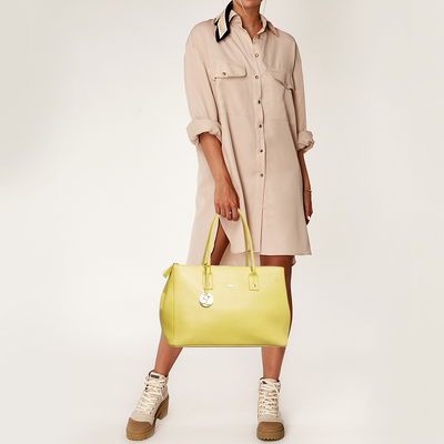 The Furla Large Linda Tote in cheerful yellow leather brightens every step of the day. Its spacious interior carries everything from work essentials to weekend finds, while comfortable handles make it easy to hold or sling over the shoulder.
