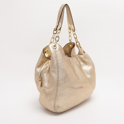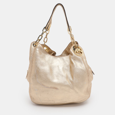 In metallic gold leather, the MK Fulton hobo reimagines a classic silhouette with a glamorous twist. Spacious and relaxed, it’s perfect for adding shine to everyday looks.