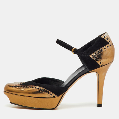 Gucci Black/Gold Suede and Patent Leather Ankle Strap Platform Pumps Size 40 1219234 - 1
