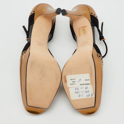 Gucci Black/Gold Suede and Patent Leather Ankle Strap Platform Pumps Size 40 1219234 (чёрный, lpn31005420)