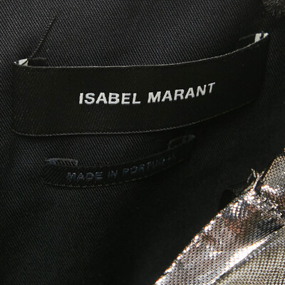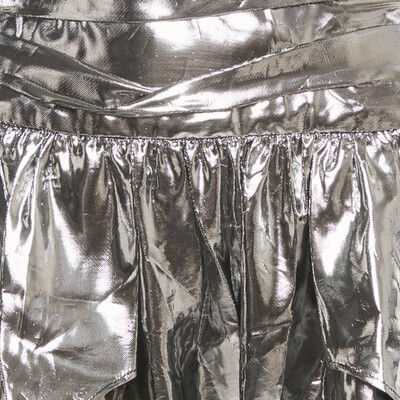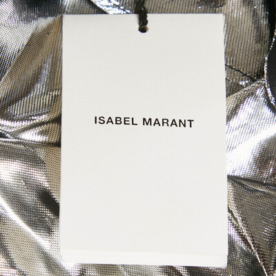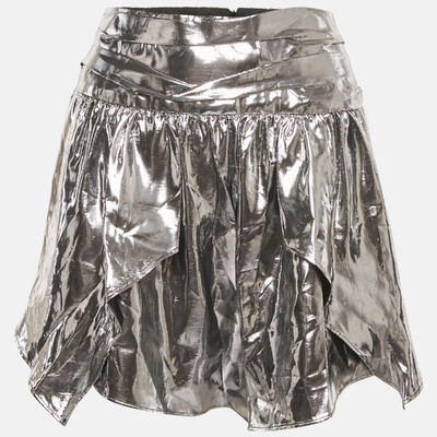 This Isabel Marant mini skirt in metallic lamé is designed with gathered detailing for texture and movement. Its high shine finish adds a glamorous edge. Perfect for party ready or statement styling.