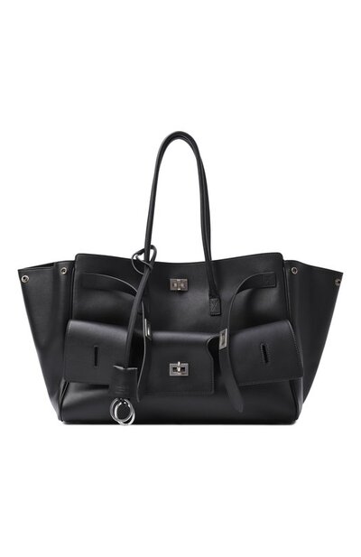 Сумку Bel Air с двумя длинными ручками выполнили из гладкой телячьей кожи. Аксессуар с ремешком спереди дополнили парой внутренних карманов на молниях и внешним с тройным клапаном. Кнопки по бокам помогают изменить форму модели. В комплекте — брелок с кольцами.