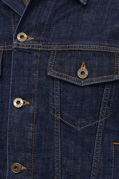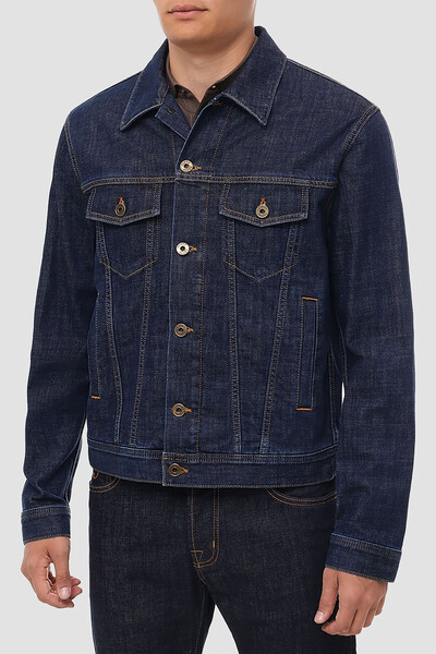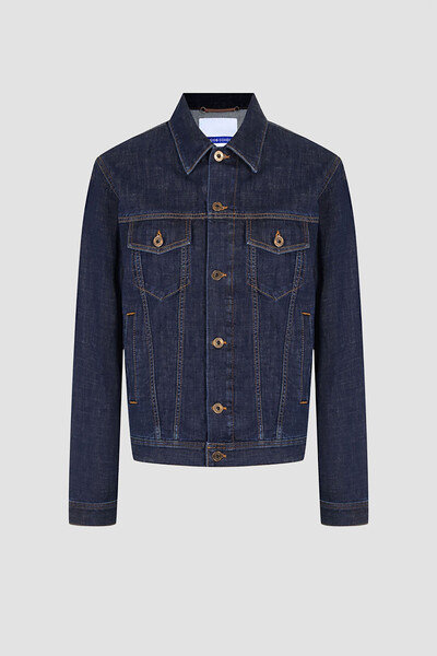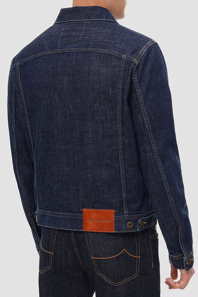 Синяя куртка JACOB COHЁN с четырьмя карманами. Для пошива повседневной модели используется мягкий хлопковый деним стрейч с эффектом делаве. Характерными особенностями изделия прямого силуэта являются оранжевая прострочка на швах и наличие знакового для бренда декора: оранжевой нашивки из шкуры пони с крупным тиснёным логотипом на поясе сзади. Манжета снизу регулируется патами на металлических пуговицах.