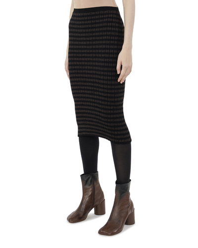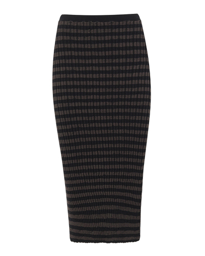 Эта юбка — средоточие изысканного стиля и утонченной элегантности, создающая гармоничный силуэт и подчёркивающая женственность. Выполненная из мягкого, высококачественного трикотажа, она обеспечивает комфорт и легкость, идеально прилегая к фигуре. Чёрно-коричневый узор в вертикальную клетку придает изделию визуальную динамику и создает иллюзию вытянутого силуэта, что добавляет стройности и элегантности. Это универсальное решение для создания как повседневного, так и вечернего образа. Фактура материала тонко подчёркивает геометрию рисунка, а аккуратный пояс обеспечивает удобную посадку, не перегружая дизайн. Эта юбка станет ключевым элементом гардероба, даря уверенность и стиль в каждом вашем шаге, прекрасно гармонируя с любыми аксессуарами и верхней одеждой.