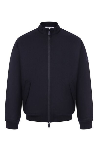 Бомбер с воротником-стойкой, манжетами и поясом из трикотажа сшили из шерсти с добавлением кашемира. Два врезных кармана с клапанами застегиваются кнопками, а сама куртка – встречной молнией. Левый рукав утепленной модели украсили брендированным патчем.