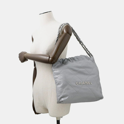 Chanel Chanel 22 Gray Shiny Calf Leather Small Handbag 1223650 (lpn31009662)