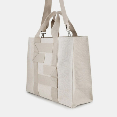This beige FENDI shopping tote is crafted in durable canvas and bold branding. Spacious interior makes it ideal for everyday errands or travel.