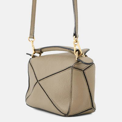 A piece of modern design in motion, the Loewe Puzzle Mini in greige leather is a study in geometric grace. Intricately cut and seamlessly assembled, it carries the essence of the avant garde with the ease of a daily companion. It’s not just a bag—it’s a statement in form.