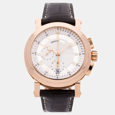 Pre-Owned Breguet Marine Chronograph 5827BR/12/5ZU Silver Automatic 18k Rose Gold Men's Wristwatch 42 mm 1223310 (lpn31009771)