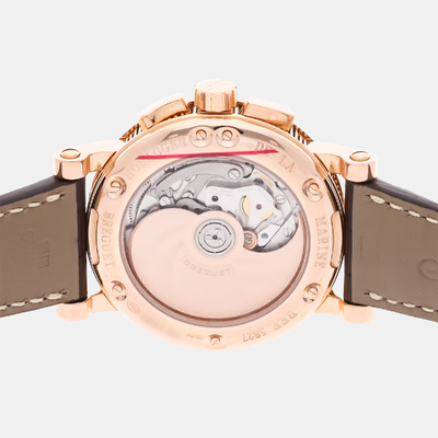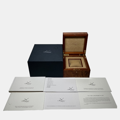 The Breguet Marine Chronograph is a statement of refined power, presented in 18k rose gold with a sophisticated silver dial. This pre owned 42 mm luxury watch combines timeless elegance with high performance automatic movement, making it an essential addition to any elite watch collection.