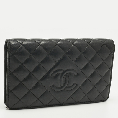 A classic piece to keep close, this preloved Chanel bifold wallet is crafted in black quilted leather and finished with the CC at the center. Its slim design fits easily into your everyday bags, ensuring your valuables are always within reach.