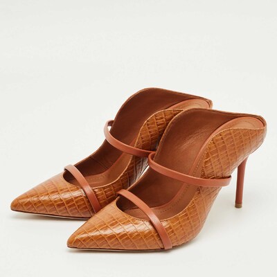 Malone Souliers Brown Croc Embossed Leather Maureen Mules Size 38 1222200 (коричневый, lpn31009841)