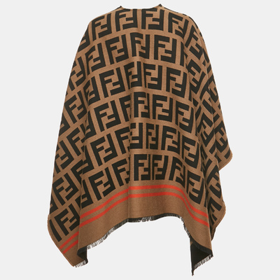 Fendi’s poncho in brown Zucca jacquard wool envelops the body in the house’s most iconic motif. The soft drape and oversized cut combine warmth with statement branding. Throw it over slim denim or leather leggings to make the pattern stand out.