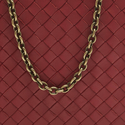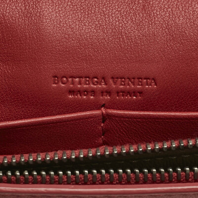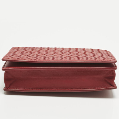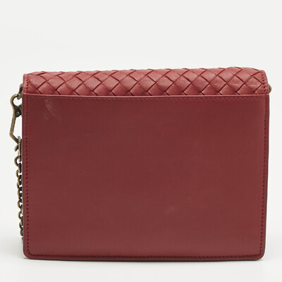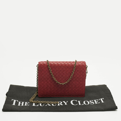 Woven in Bottega Veneta’s signature intrecciato, this pre loved red leather wallet carries the ease of both a clutch and a crossbody. The flap opens to a neatly arranged interior, while a chain strap lets it shift from hand to shoulder in an instant.
