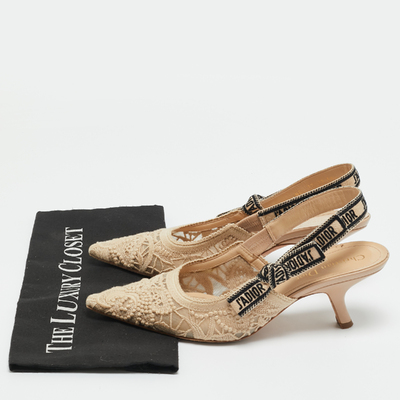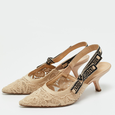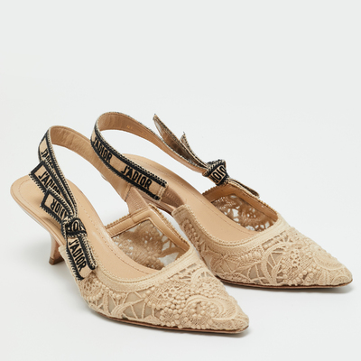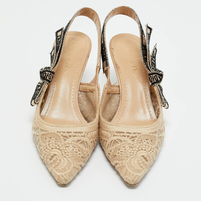 Dior Beige Fabric and Leather J'ADior Slingback Pumps Size 38.5 1222868 (бежевый, lpn31009879)