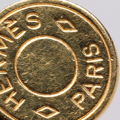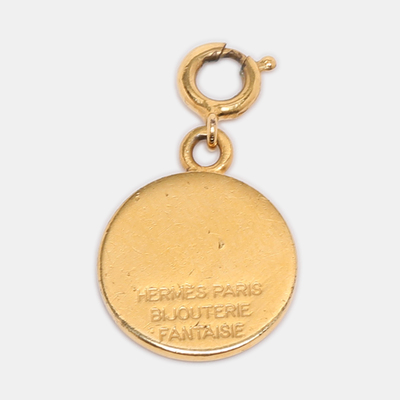 Hermès’ Bijouterie Fantaisie pendant in gold tone offers a sculptural take on everyday jewellery. Its clean lines and polished surface embody the maison’s understated luxury. A versatile piece to wear with fine chains or ribbon for an effortless, equestrian inspired accent.