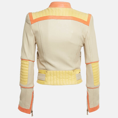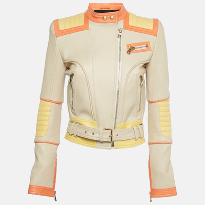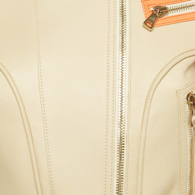 Balmain Beige Leather Zip Up Biker Jacket S 1221203 - 1