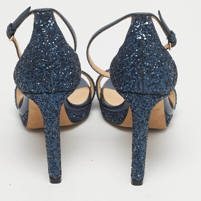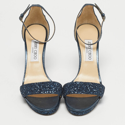 Jimmy Choo Metallic Blue Glitter and Leather Ankle Strap Sandals Size 40 1223234 (lpn31009954)