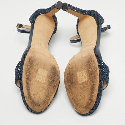 Jimmy Choo Metallic Blue Glitter and Leather Ankle Strap Sandals Size 40 1223234 - 1