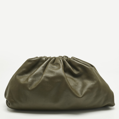 Soft folds of olive green leather gather into Bottega Veneta’s Classic The Pouch. Its cloud like shape feels modern yet easy, roomy enough for daily essentials but polished enough for evening plans. A large sized designer clutch that is effortless to carry and easy to let shine.