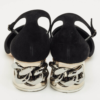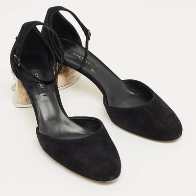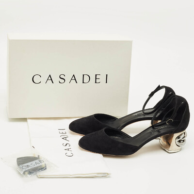 Casadei’s pumps in black suede reinterpret the Mary Jane with a modern heel and streamlined strap. The soft texture and clean cut make them versatile from desk to dinner. Style with tailored separates or midi dresses for understated sophistication.