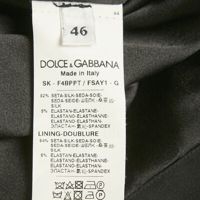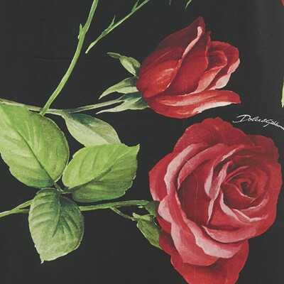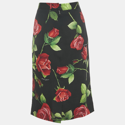 Feminine and sophisticated, this Dolce and Gabbana silk pencil skirt showcases a striking rose print against a deep black base. The fitted silhouette flatters effortlessly. Ideal for romantic evenings or polished daytime styling.